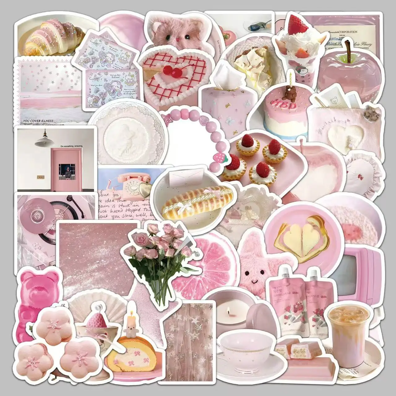 50 ROSA AUFKLEBER im INS-STIL, niedliche, wasserdichte GRAFFITI-NOTIZBUCH-MATERIAL-DIY-NOTIZBUCH-AUF...