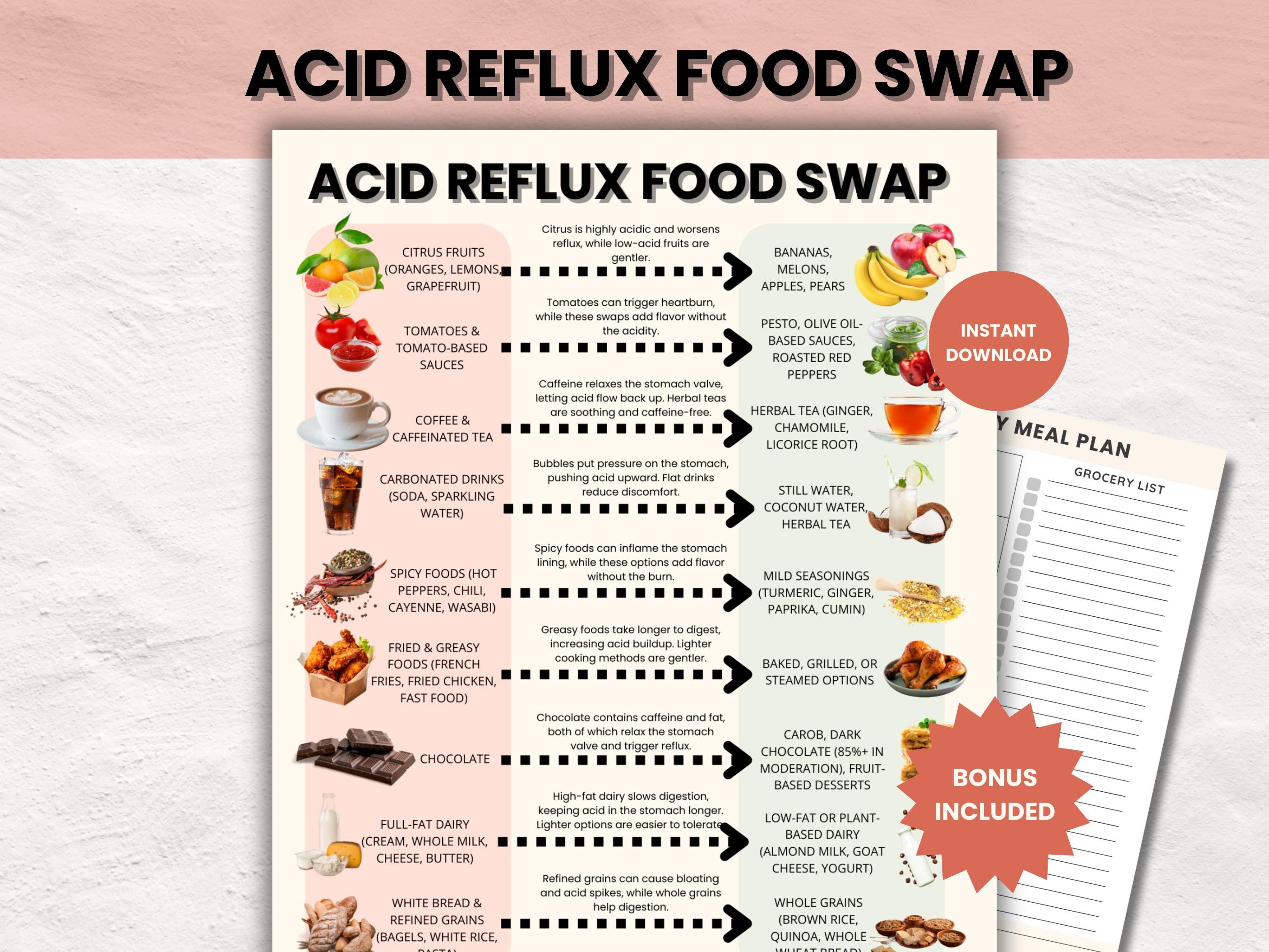 Acid Reflux Nahrungstausch Poster, GERD Diät Ratgeber (Digital...