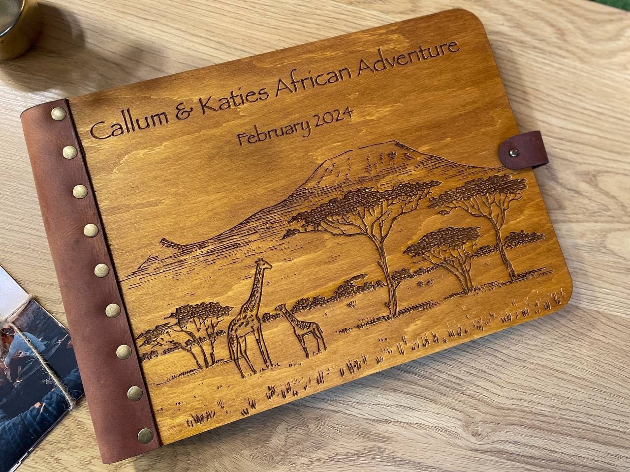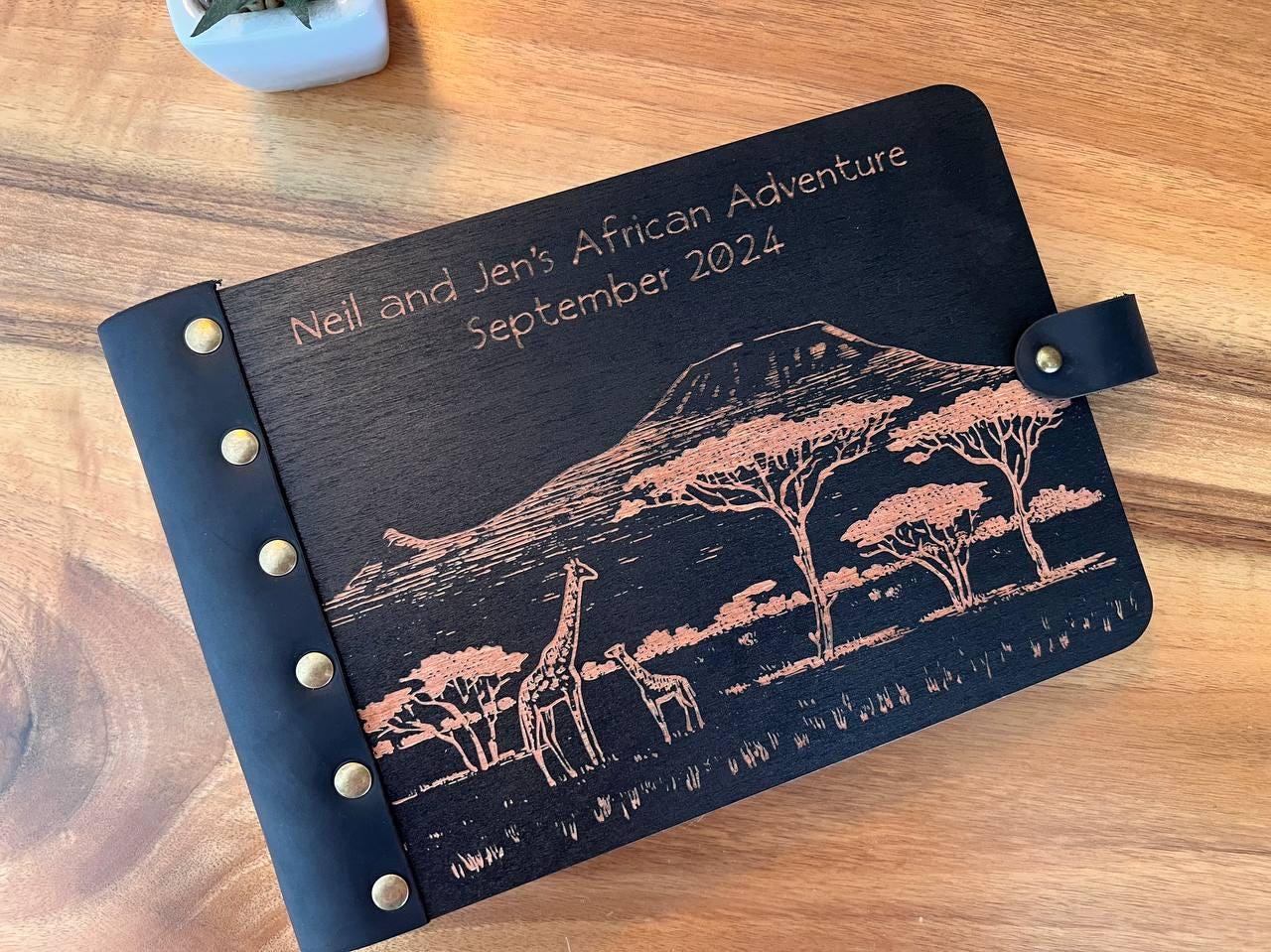 "Unser afrikanisches handgefertigtes Fotoalbum aus Holz ist perfekt, um Erinnerungen an Safaris...
