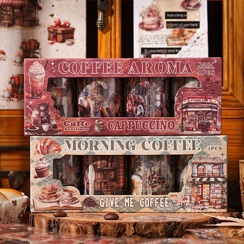 4 Bände – Midday Coffee Retro-PET-Basisheft im europäischen Stil, dekoratives Materi...