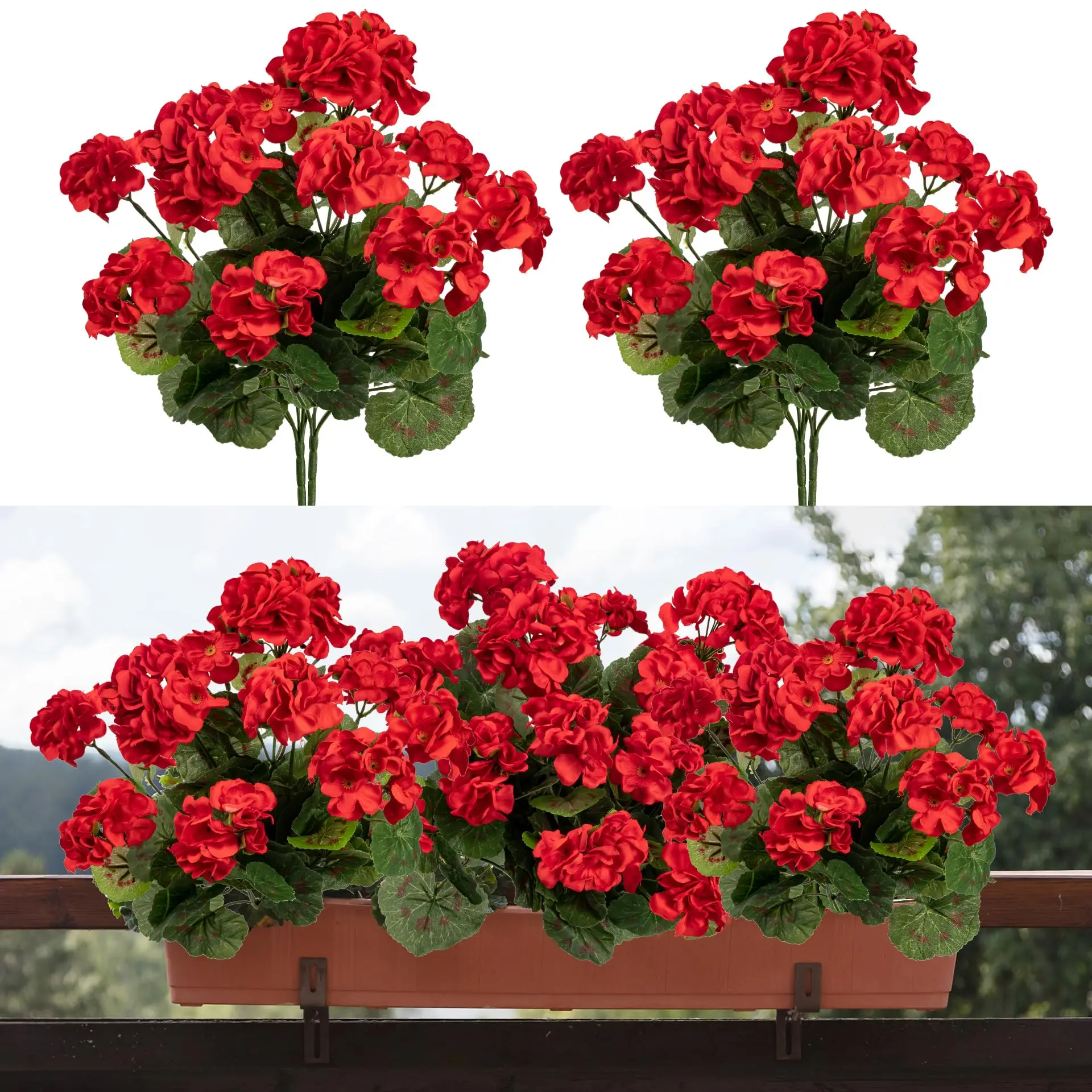 2 Stück künstliche Blumen aus künstlichem Geranie, UV-beständig, gefälschte...