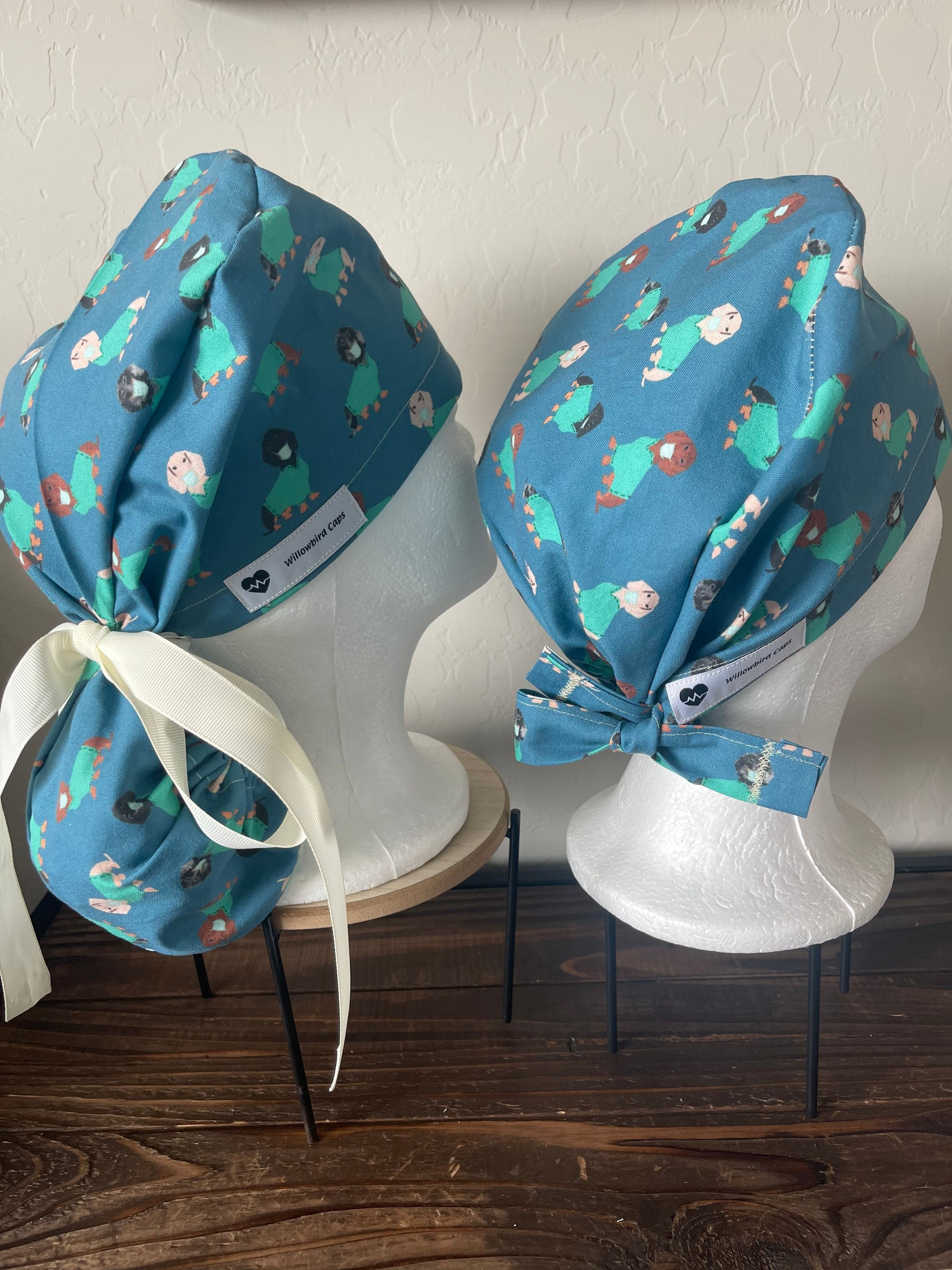 Scrub-Kappe mit Pferdeschwanzhalter, der über eine verstellbare Schleife verfügt, um das H...