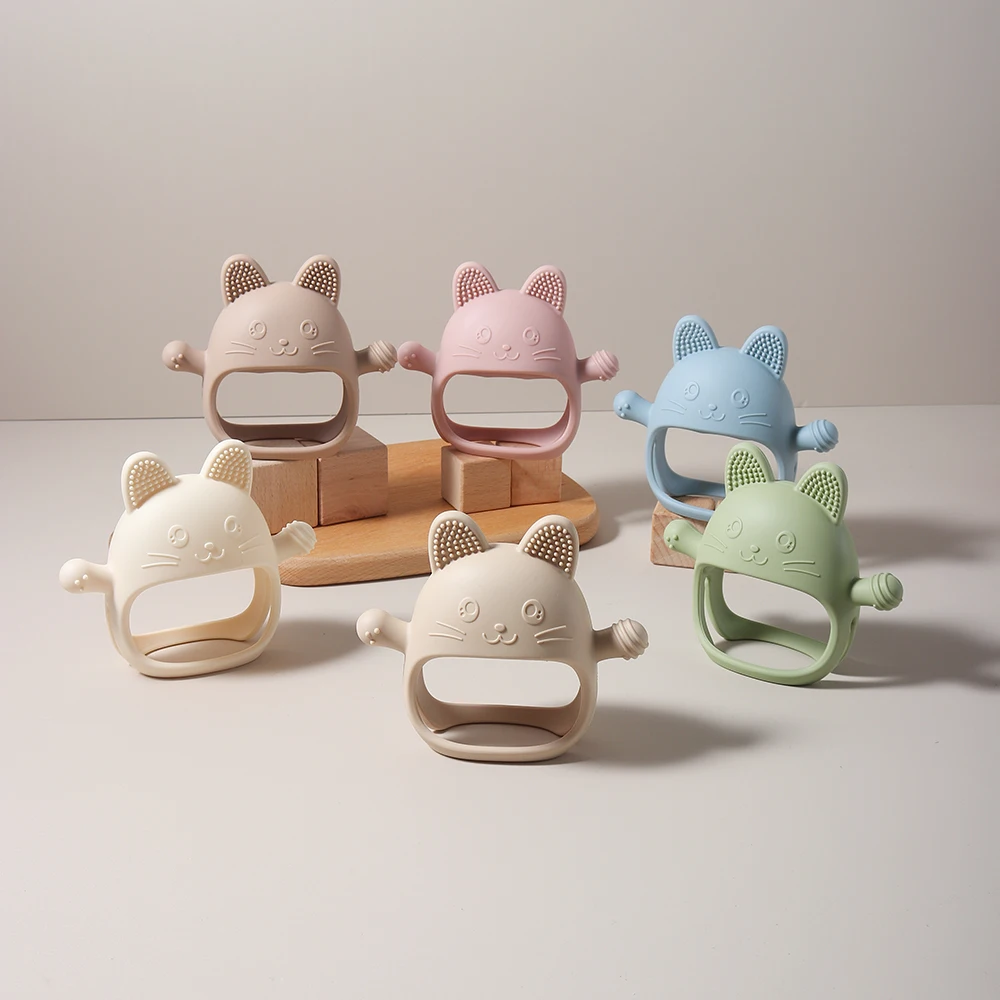 Baby Beißring Hasenhandschuhe Beißring Silikon Anti-Essen Hand ​ Molar Stick Massa...