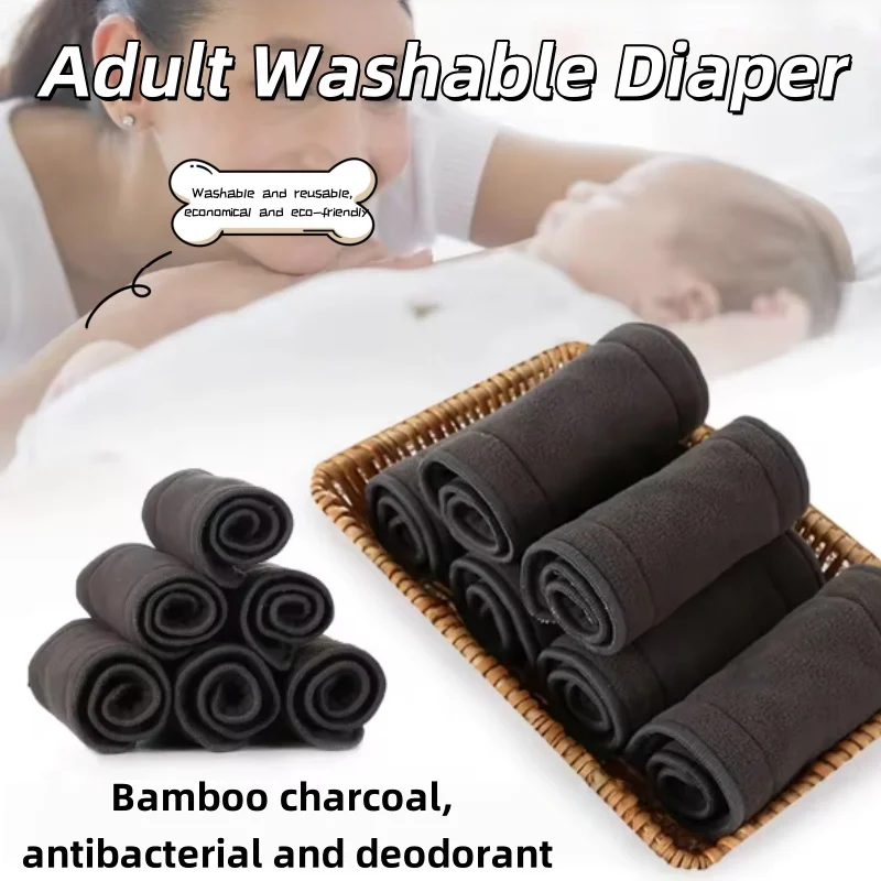 Waschbare Windel für Erwachsene, 5-lagige Bambuskohle, hohe Absorption, wiederverwendbare Stoff...