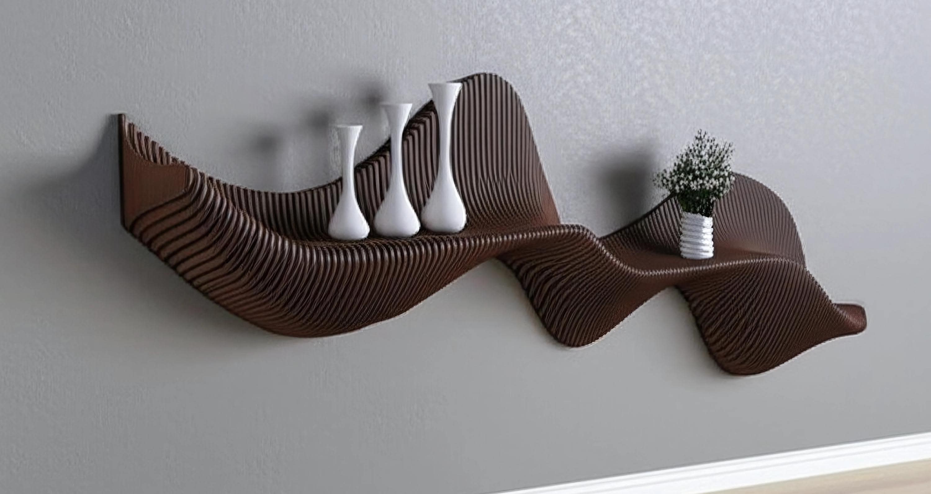 Parametrisches gewelltes Wandregal - Handgefertigtes modernes Holzregal mit benutzerdefinierten Farb...