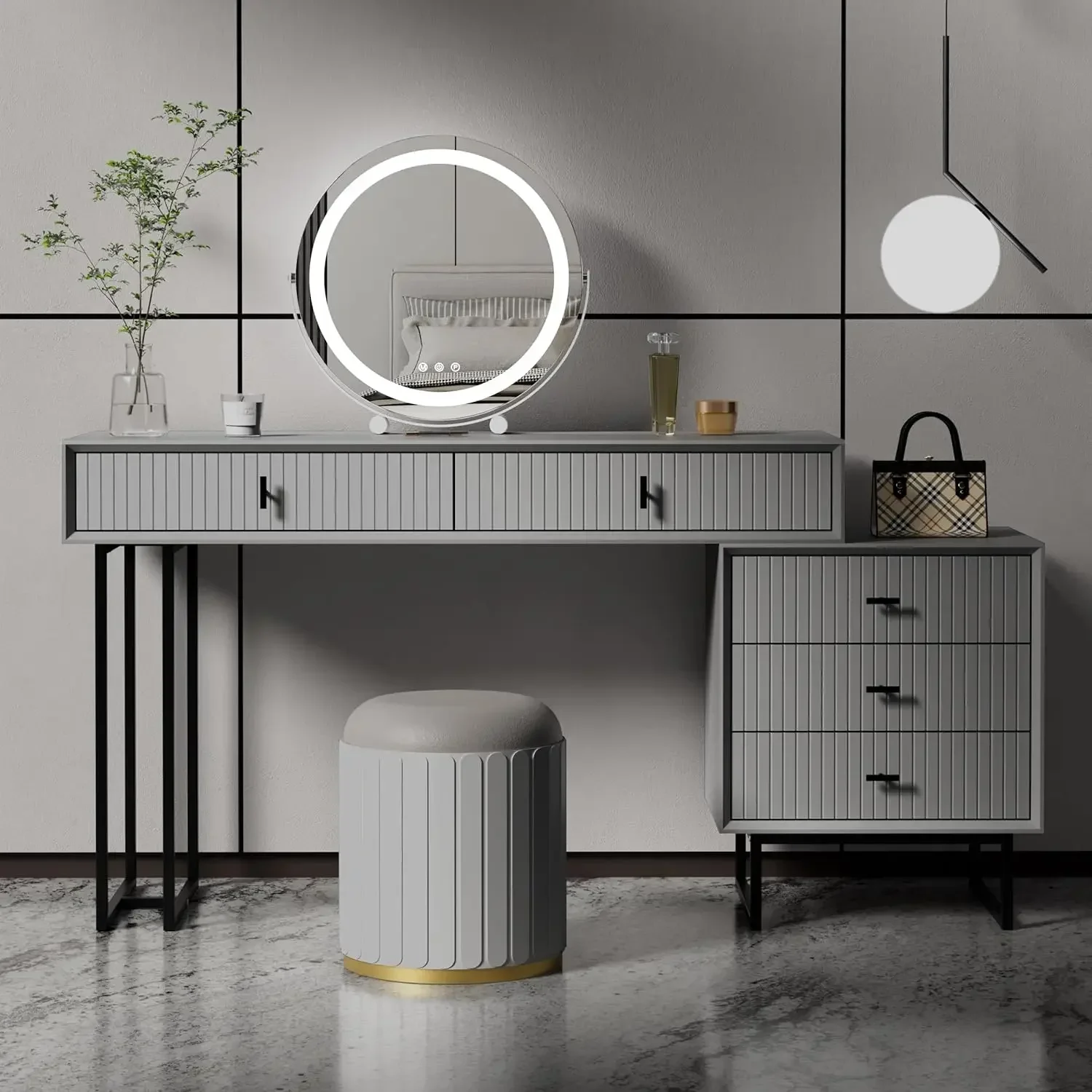 Großer Schminktisch mit Schubladen, Schminkset mit beweglicher Kommode mit 3 Schubladen, moder...