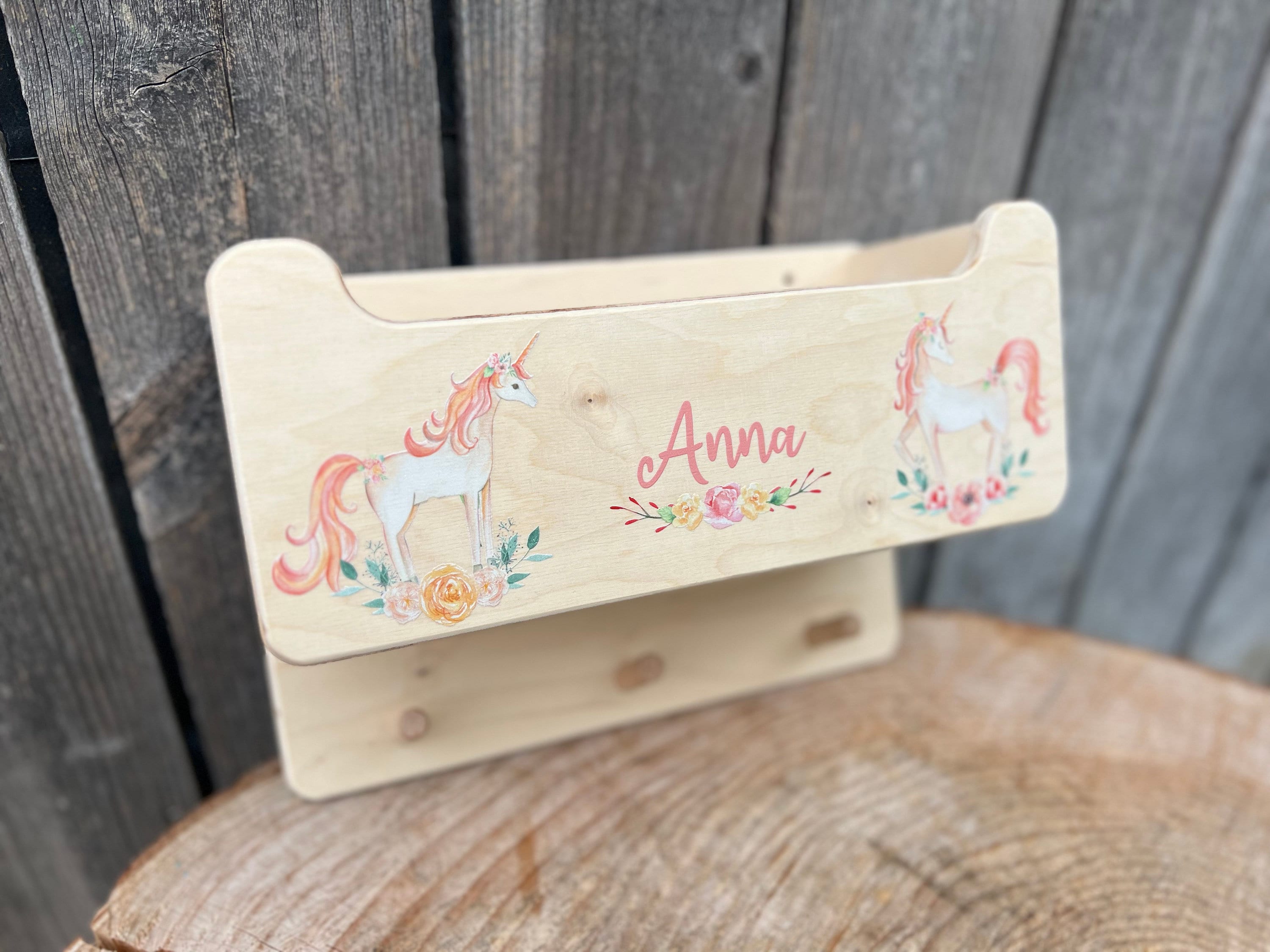 "Personalisierte Kindergarderobe mit Ablage - Design Einhorn & Blumen Entdecke die perfekte...