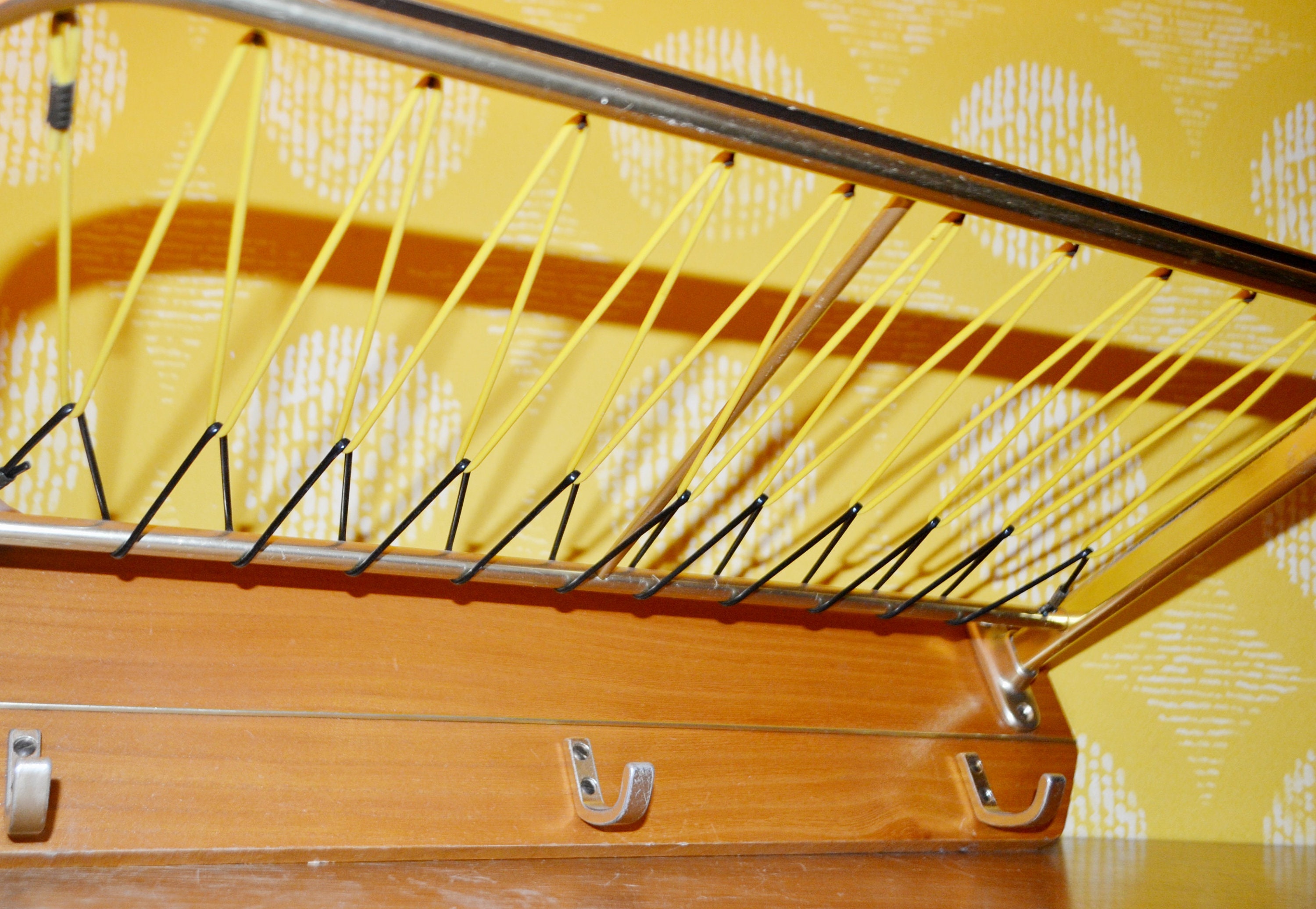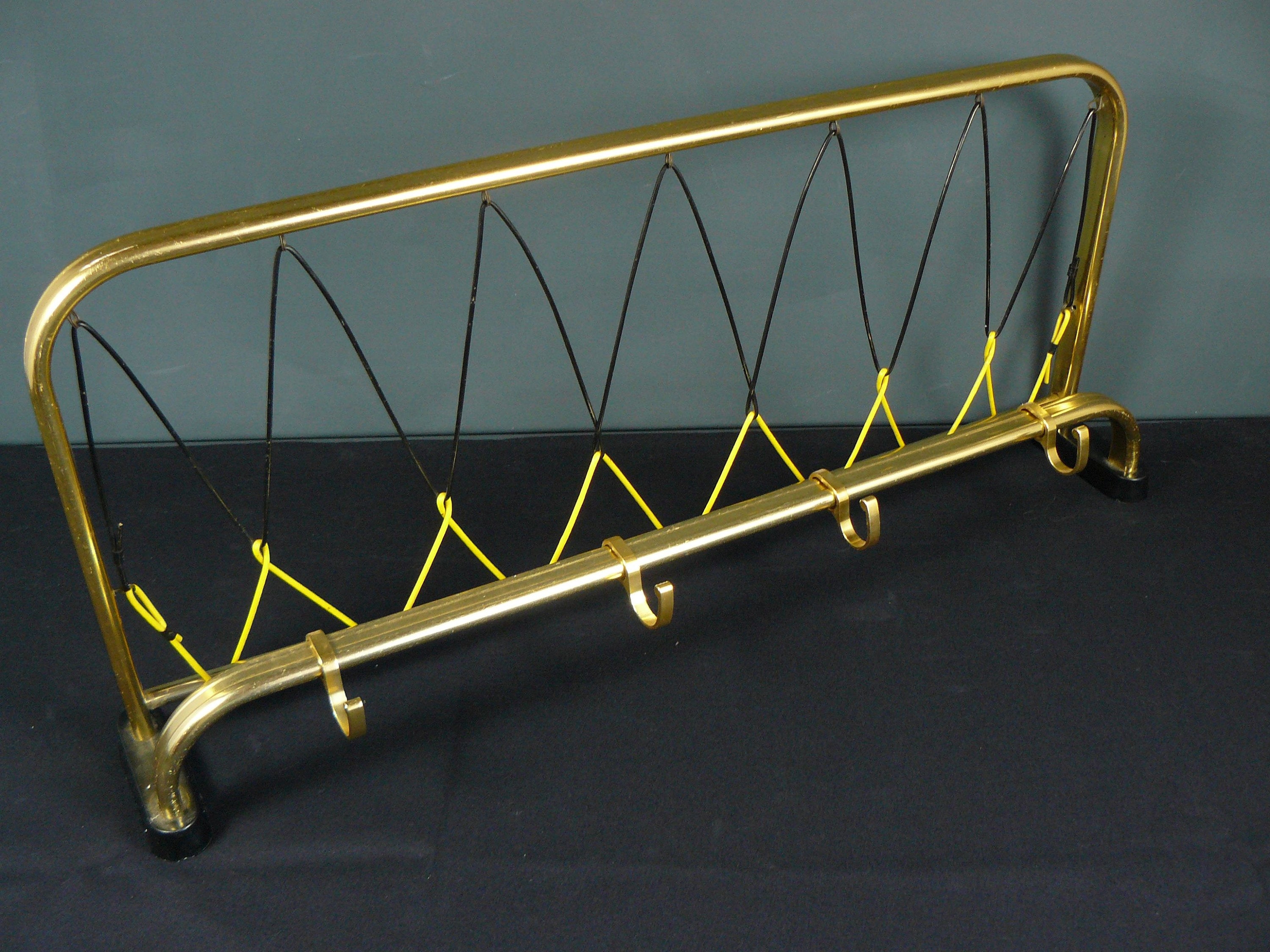 midcentury Messing Wandgarderobe String mit Hutablage 50s brass wardrobe zeittypische Wandgarderobe ...