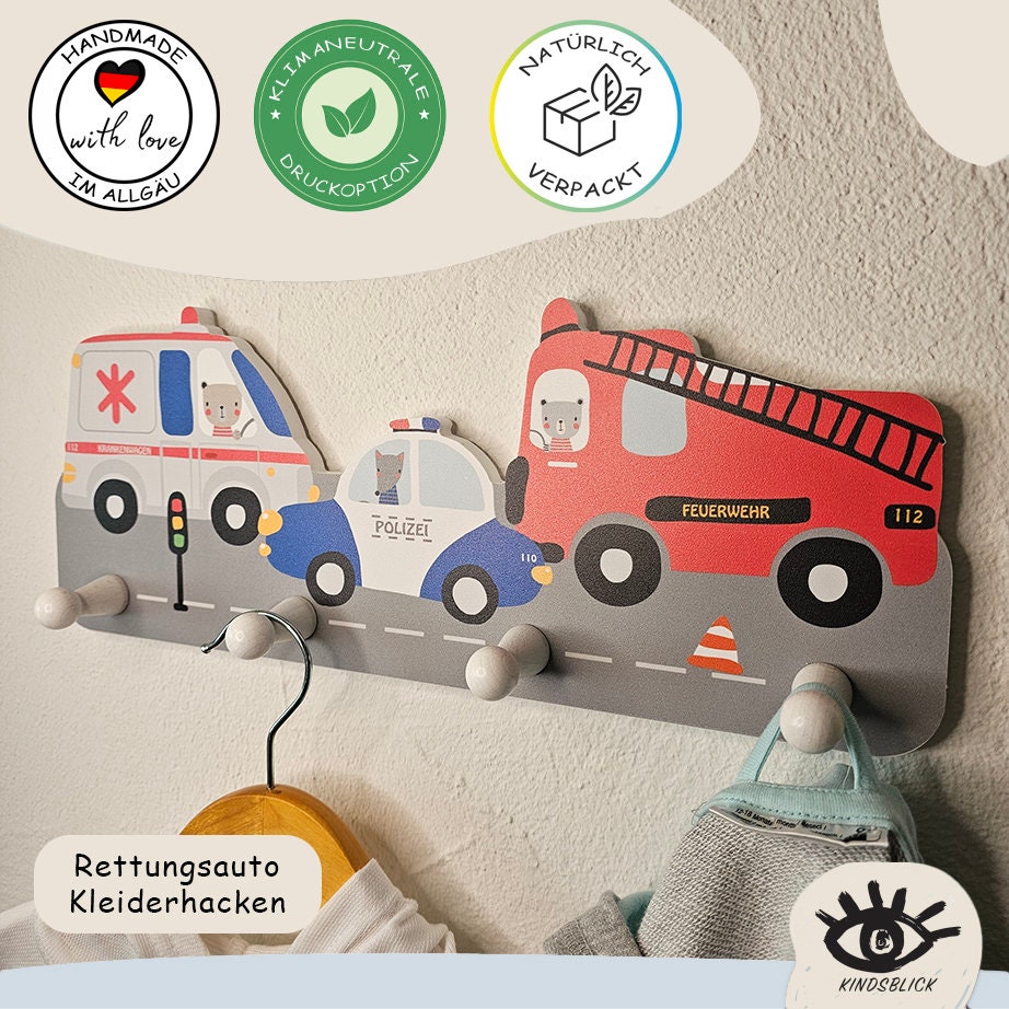 Kindsblick Rettungsautos Kindergarderobe in Bunt inkl. DIN A4 Poste...