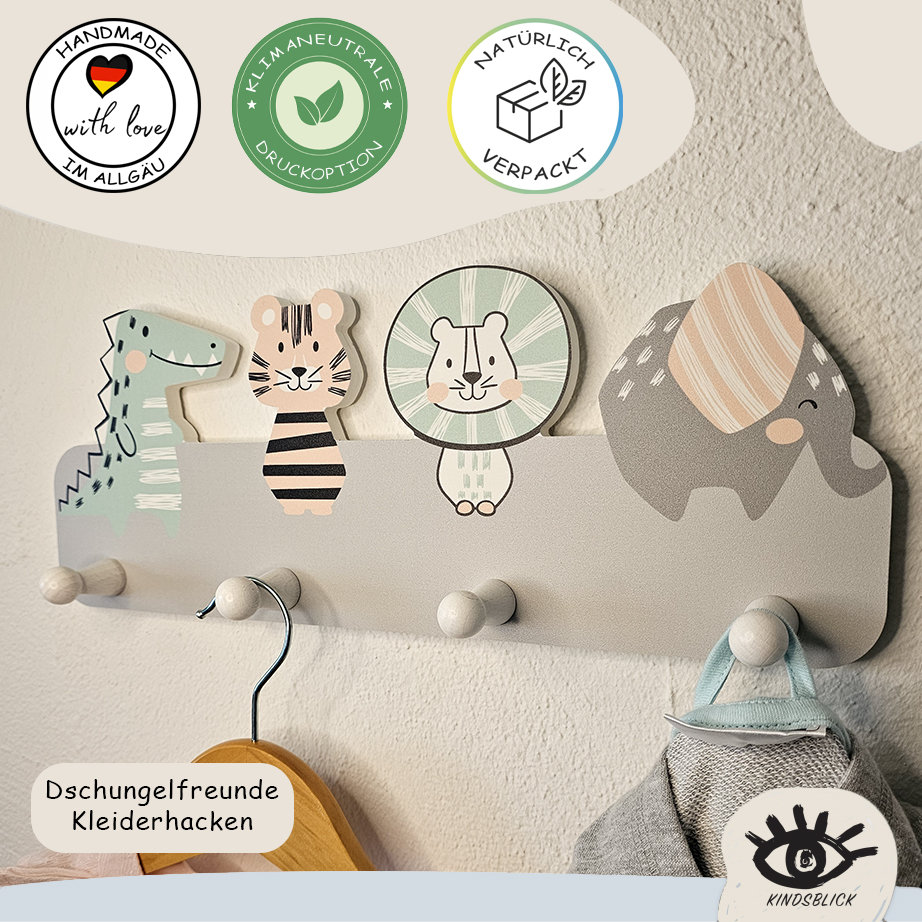Kindsblick Junglefreunde Kindergarderobe in Grau inkl. DIN A4 Poste...