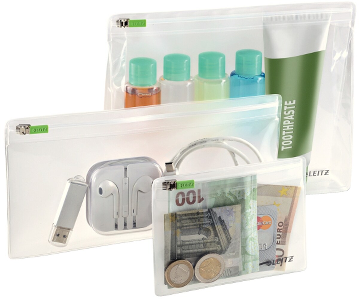Leitz Reise Zip-Beutel sortiert, je 1 x Größe XS (130 x 95 mm), S (232 x 122 mm) und M (2...
