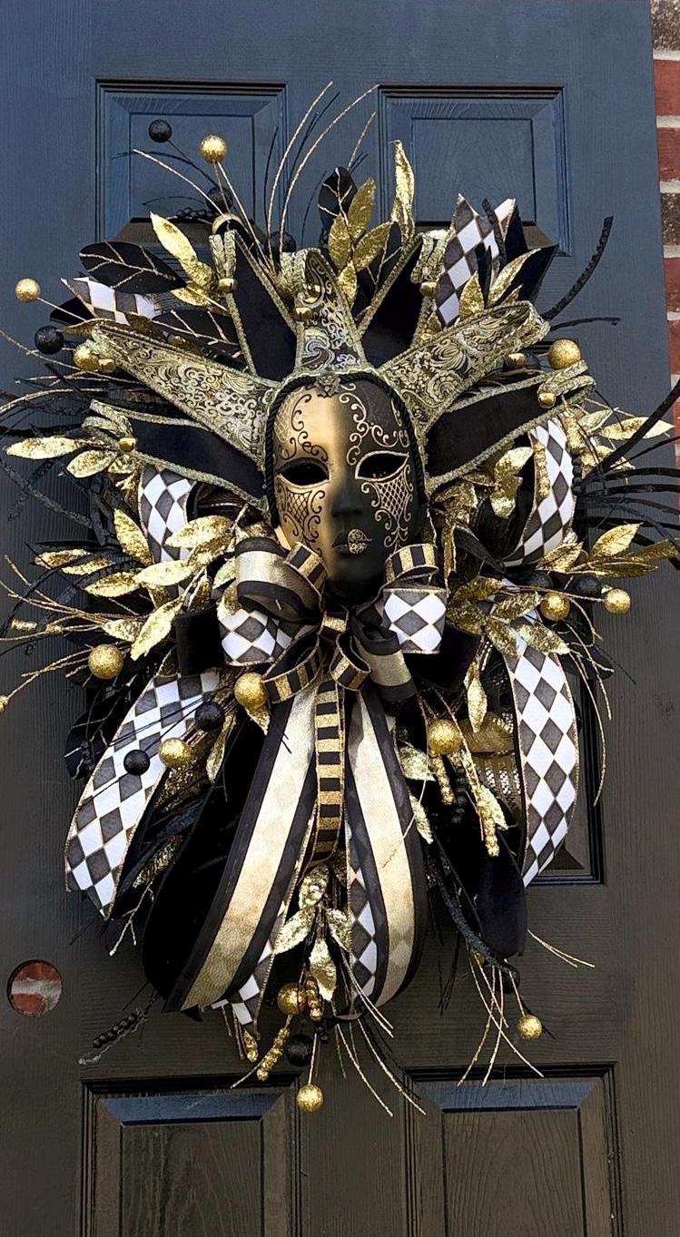 Machen Sie Ihren Eingangsbereich unvergesslich mit diesem versandfertigen schwarz-goldenen Mardi Gra...