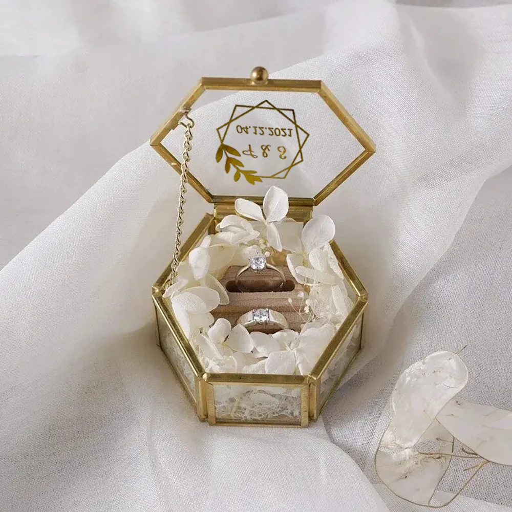 Benutzer definierte Ehering Box Verlobung sechseckige Glas Ring Box Vorschlag Braut Brautjungfer Ges...