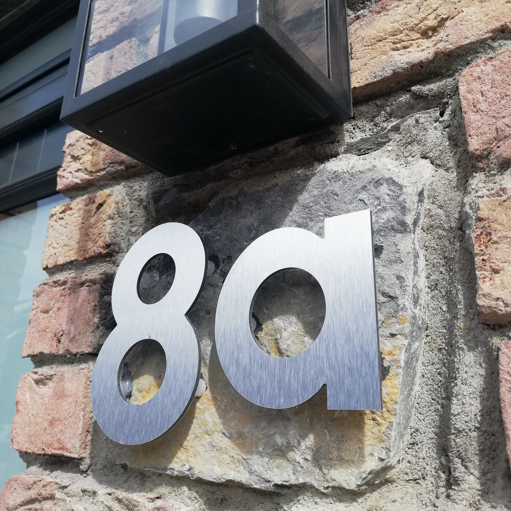 Diese in Irland hergestellten, individuellen schwebenden und aufgeklebten Hausnummern und Buchstaben...