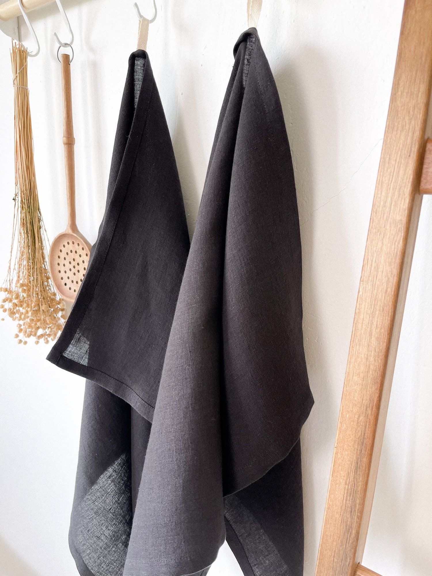 Schwarzes Leinen Geschirrtuch, Gewaschenes Leinen Geschirrtuch, Nac...