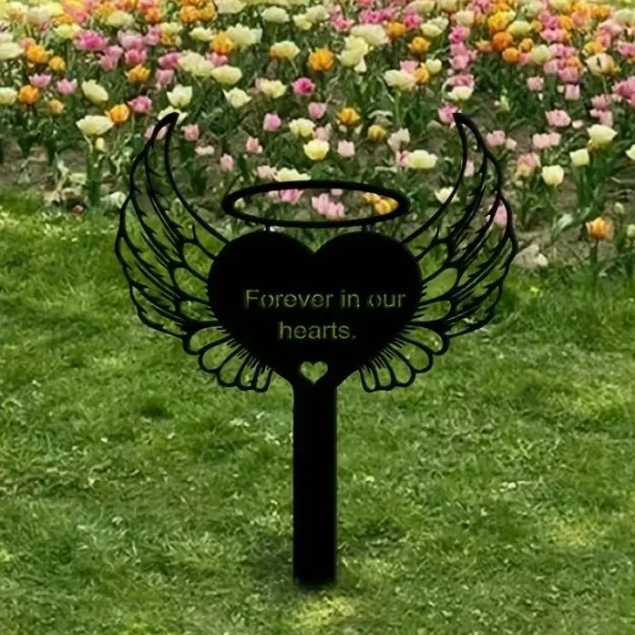 CIFbuy Herz mit Engelsflügeln Gedenkstock, Gartenstecker aus M...