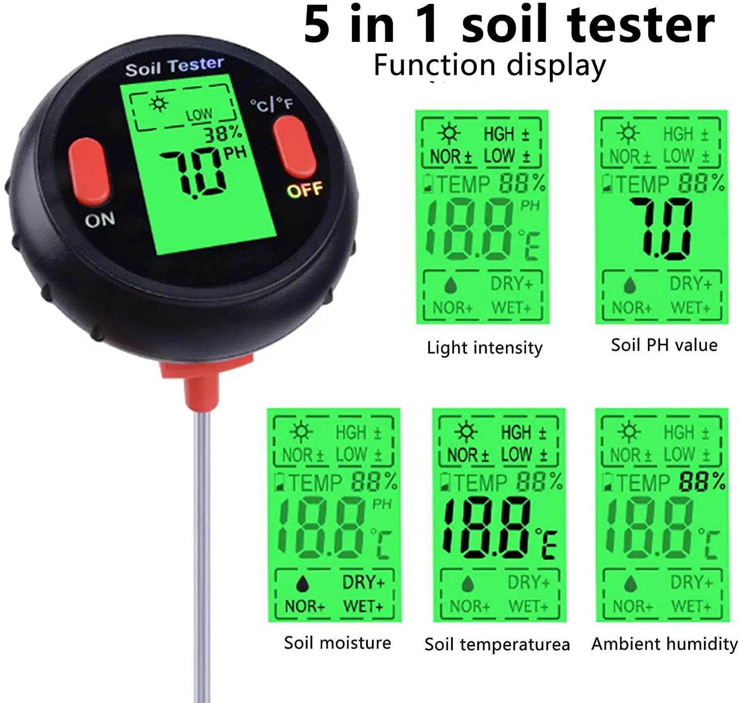 5 in 1 Boden test messer digitale Boden feuchtigkeit ph Temperatur ...