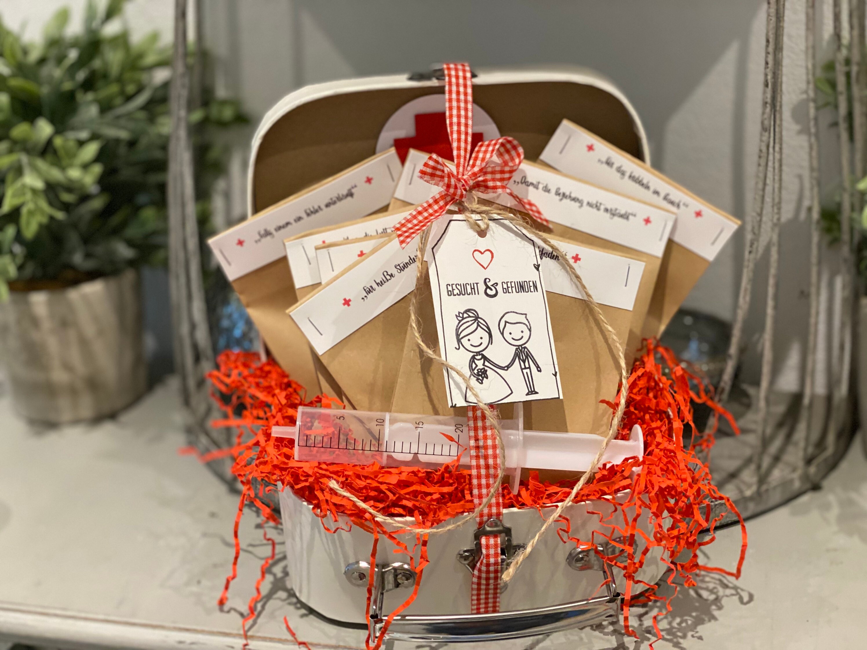 "Ehe Notfall Koffer klein Ein super tolles Geldgeschenk zur Hochzeit. Inhalt: 8 Tüten Kaug...