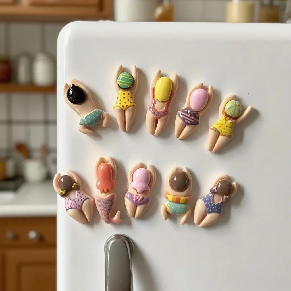 6 Stück niedliche Schwimmfiguren-Harzmagnete – bunte ova...