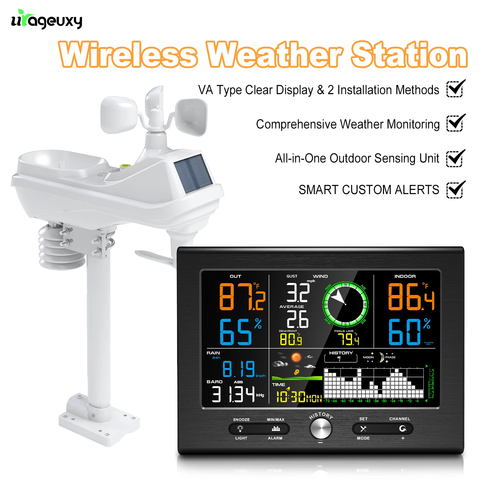 7-in-1-Solar-Funkwetterstation mit Außensensor, 150 m Fernwindgeschwindigkeitsmesser, Regenmes...