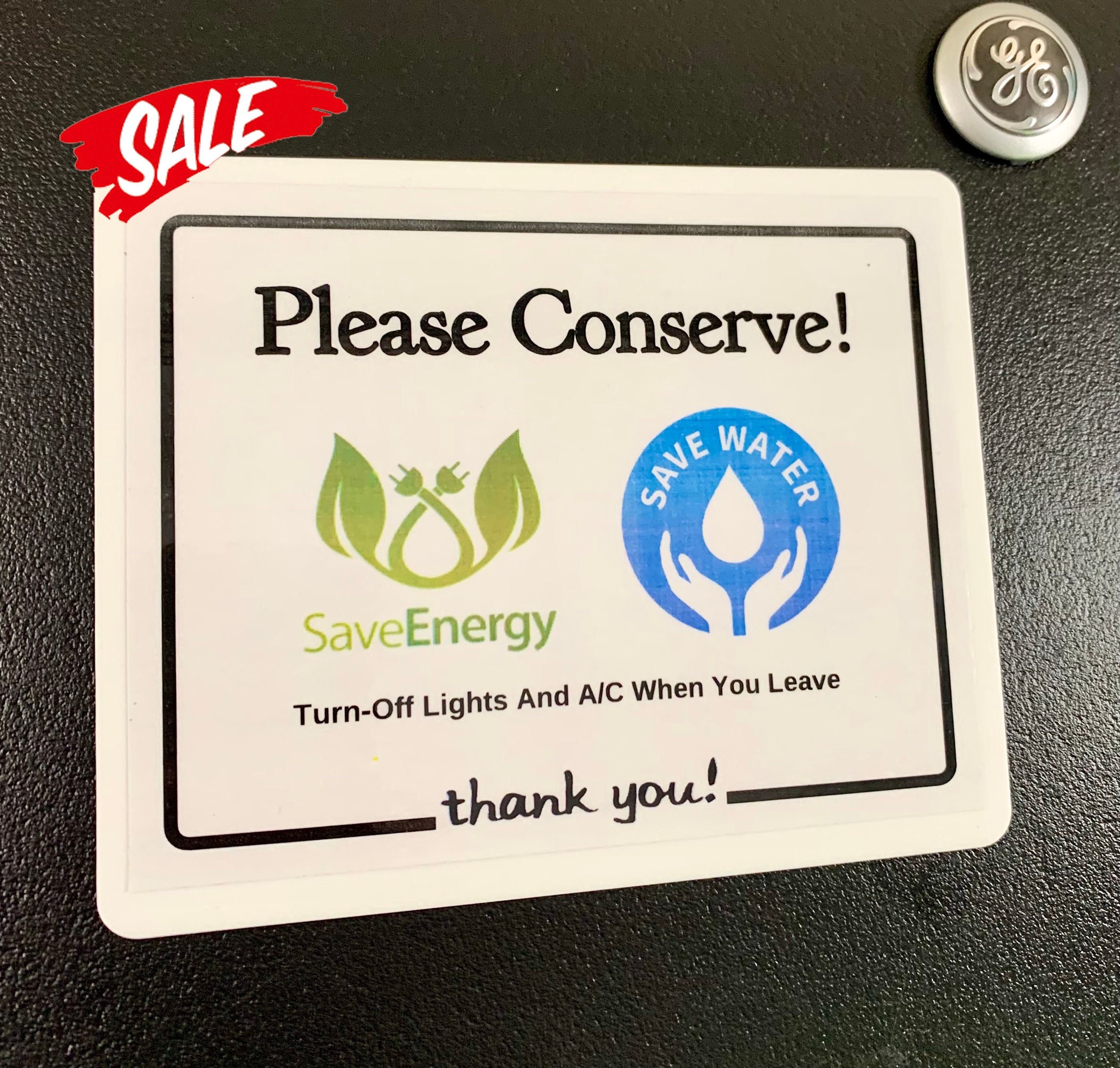 "Dies ist mein neues Kühlschrank-Magnetschild „Conserve Water and Electricity\"...