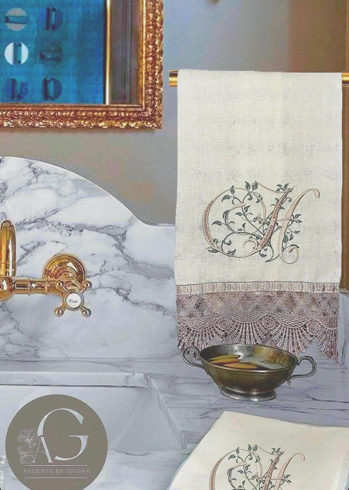 Besticktes Leinentuch Geschirrtuch mit Monogramm Personalisiertes G...