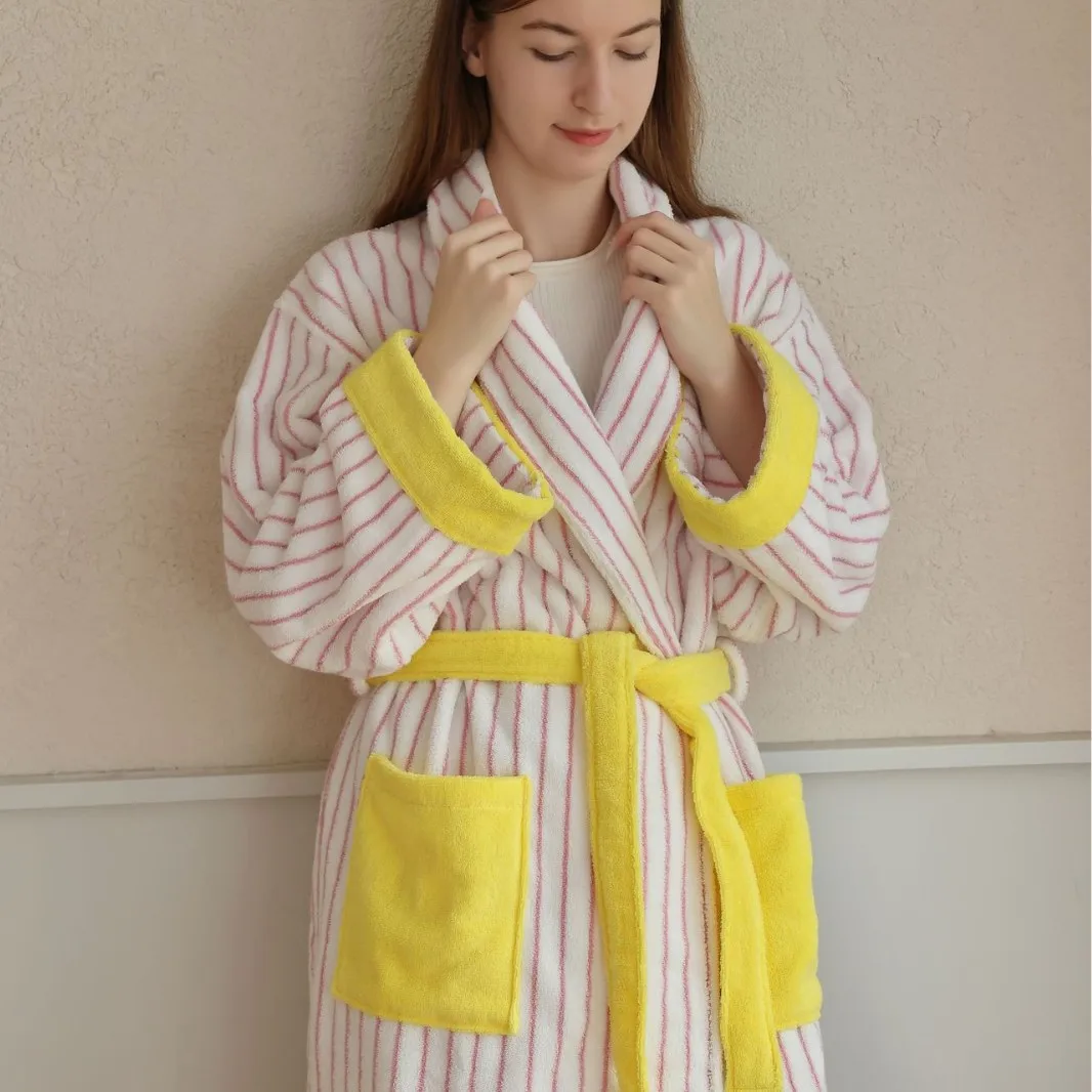 Farblich passender Baumwoll-Bademantel, gestreifte Baumwollgarn-Bad...