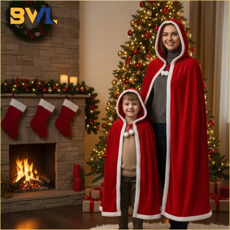 Weihnachtsschal, Umhang, Kapuze, Weihnachtsmann-Kostüm, rot, m...