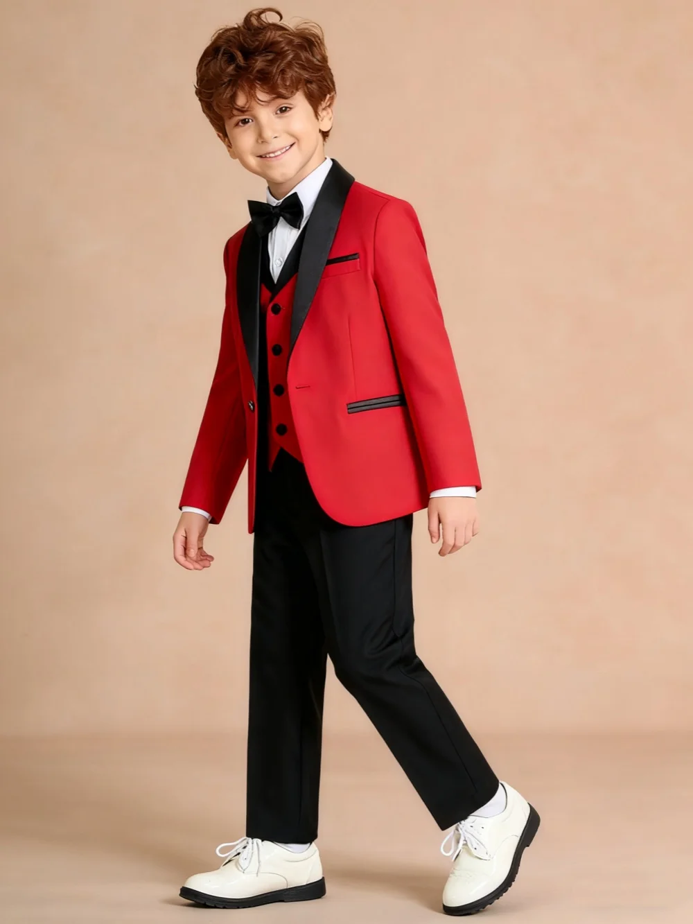 Weihnachtsrote Jungenanzüge, 4-teilig, Bankett, Party, Schal, ...