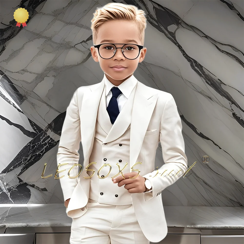 3-teiliger Jungenanzug, eleganter Blazer mit spitzem Revers, Schal, Weste, Hose, Outfit für Hoc...