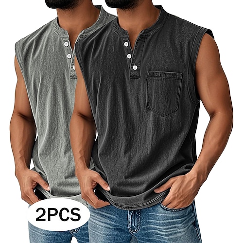 2-teiliges Vintage-Tanktop/Westen-Shirt für Herren, ärmel...