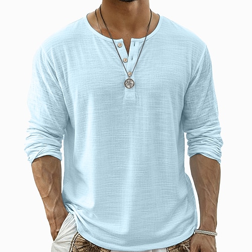 Herren T-Shirt Leinen-T-Shirt Langarm Henley Sommer Frühling E...