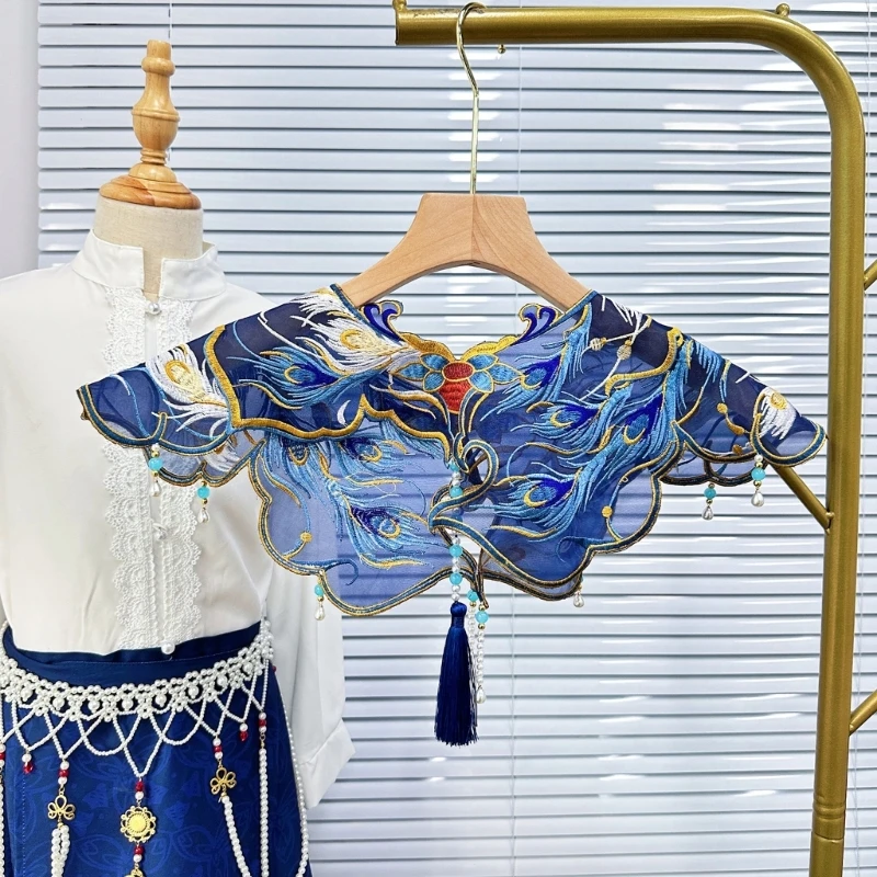 Traditionelle chinesische Perlenquasten, falscher Kragen, Vintage-Stickerei, gefiederter Yunjian-Sch...