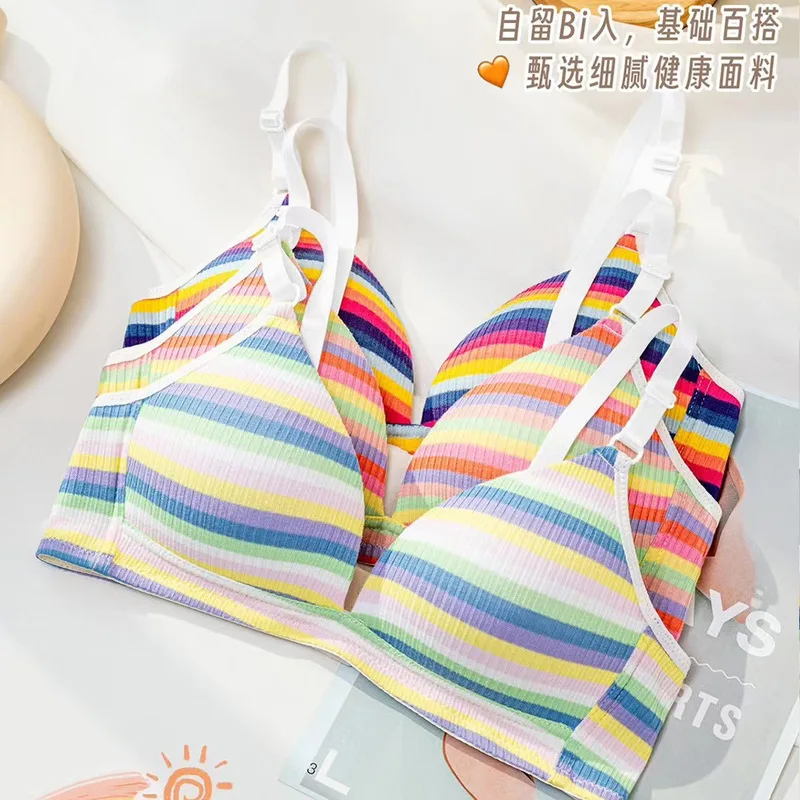 MOYISU Japanischer gestreifter Dessous-BH ohne Draht, Studenten-Bralette, kleine Brüste, sü...