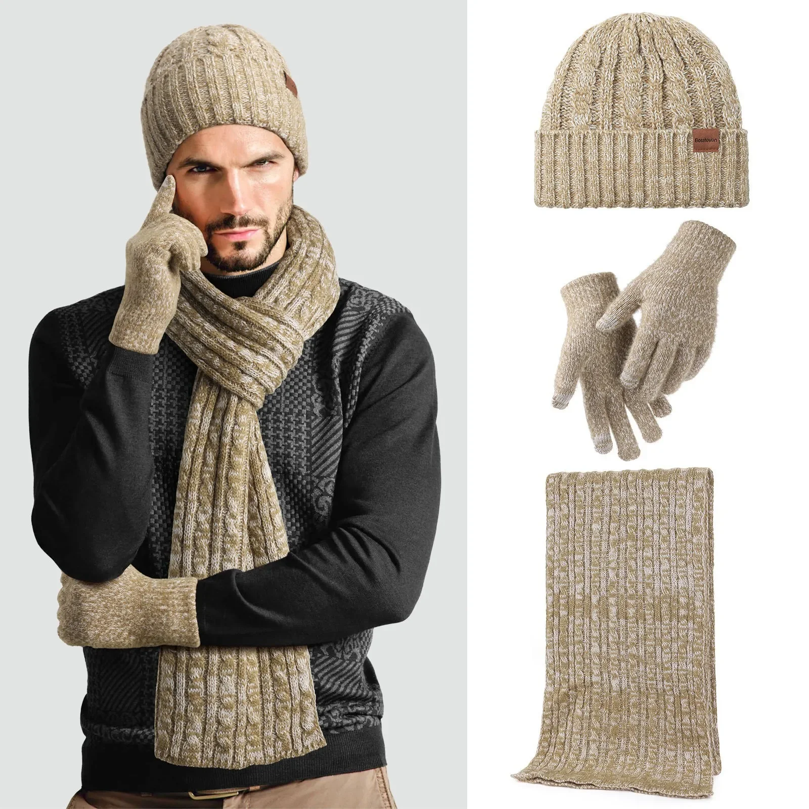 Mütze, Schal, Handschuhe, dreiteiliges Set, Fleece, kältebeständig und warm, Strickha...