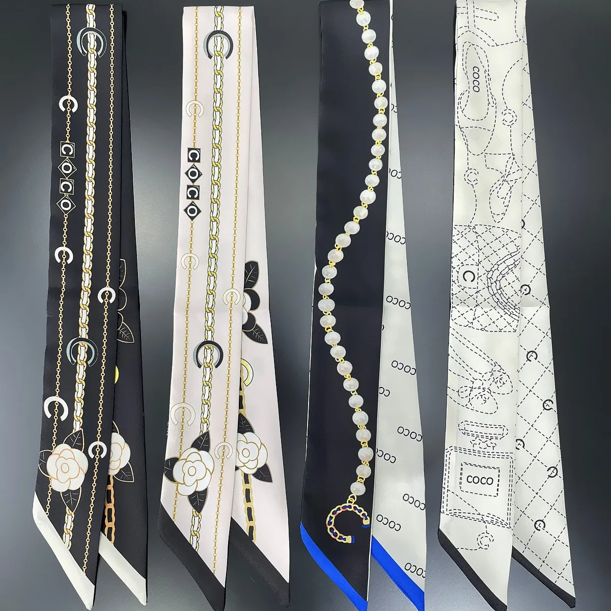 Schwarz-weißer Schal mit Blumenmuster, kreatives dekoratives Band, Haarband mit Taschenbindung...