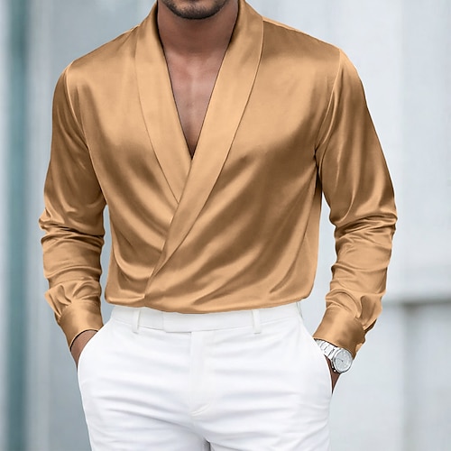 Herren Hemd Satinhemd Kleidhemd Knopfhemd Abschlussballhemd Einfach...