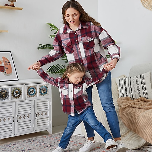Mama und ich Hemden Oberteile Karomuster Lässig Patchwork Rosa...