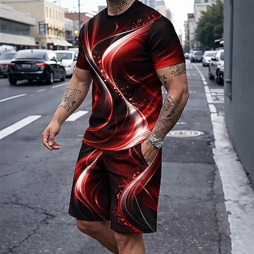 Herren Geometrisch 2St T-Shirts-Sets Sommeroberteile Kurzarm Kurze ...