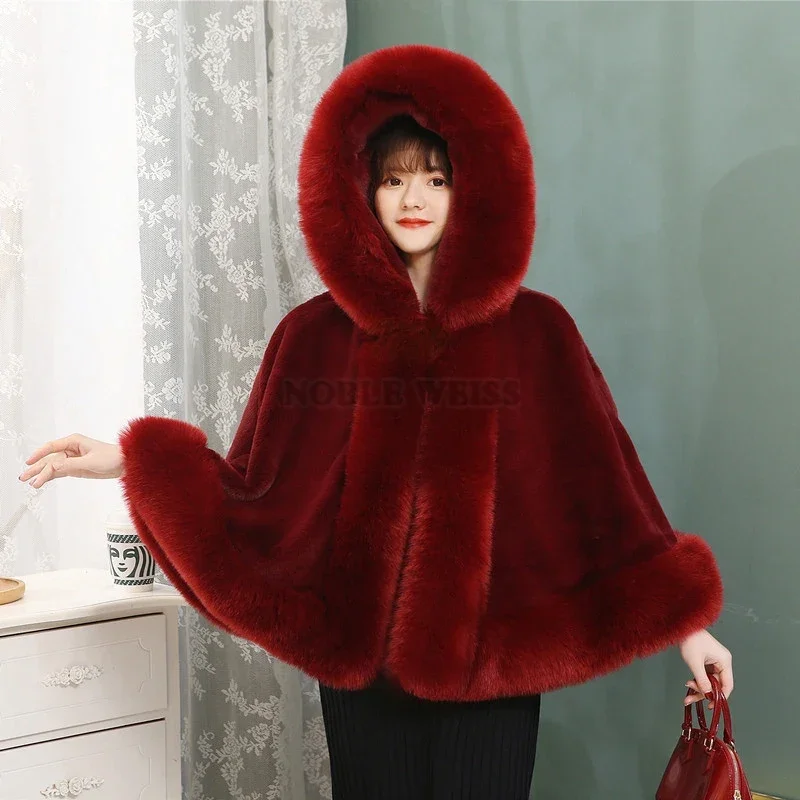 Kunstpelz Hochzeit Party Schal Winter Warm Braut Bolero Hochzeit Mantel Hochzeit Kapuze Braut Wrap P...