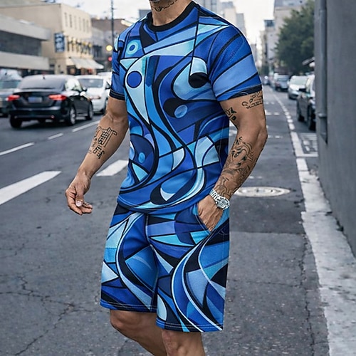 Herren Geometrisch 2St T-Shirts-Sets Sommeroberteile Kurzarm Kurze ...