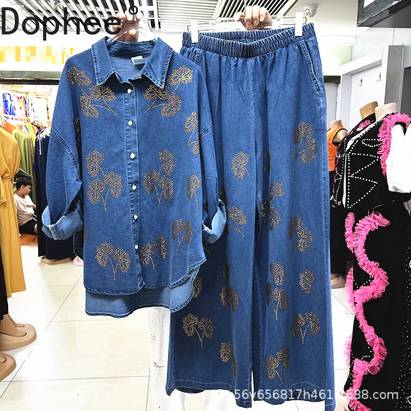 Trendy Weibliche Denim Sets 2025, Neue Herbst Gold Diamanten Lose L...