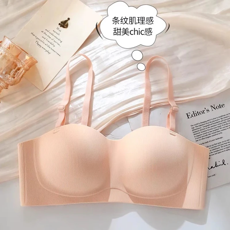 Neues japanisches nahtloses Dessous-Set, bequemes kabelloses Bralette für kleine Brüste, P...