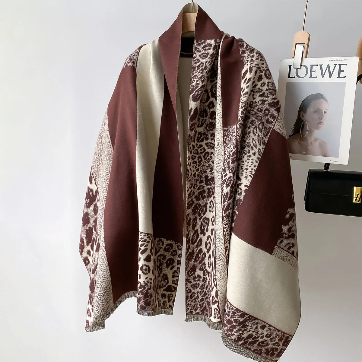 2023 Winterschal mit Leopardenmuster, warmer Kaschmirschal, Wickel, weiblich, dicker, weicher Poncho...