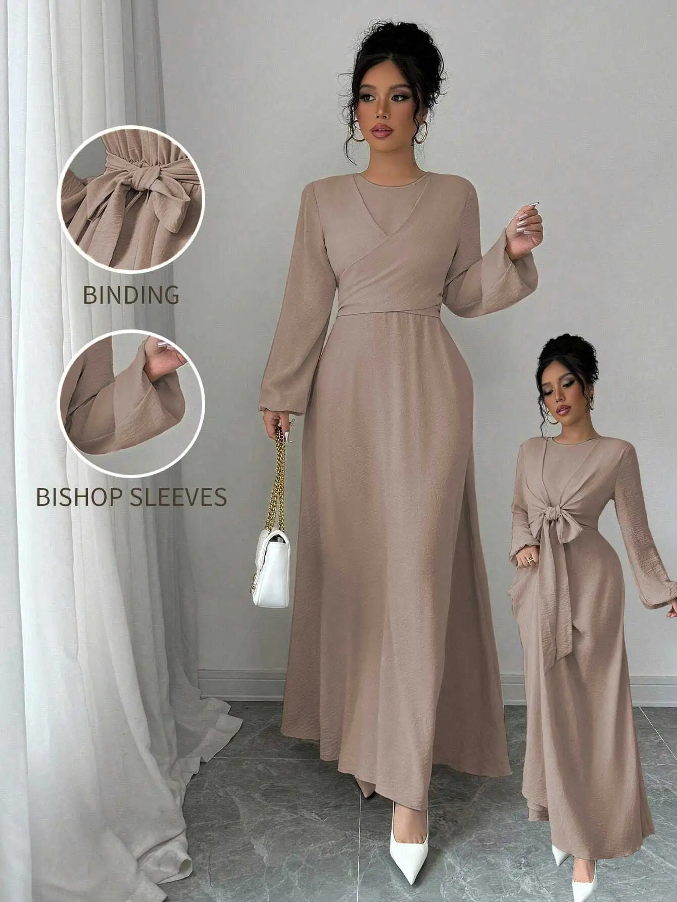 Muslimische Abaya-Taillenbindung mit überkreuztem Ausschnitt und Bischofsärmeln, ideal f&u...