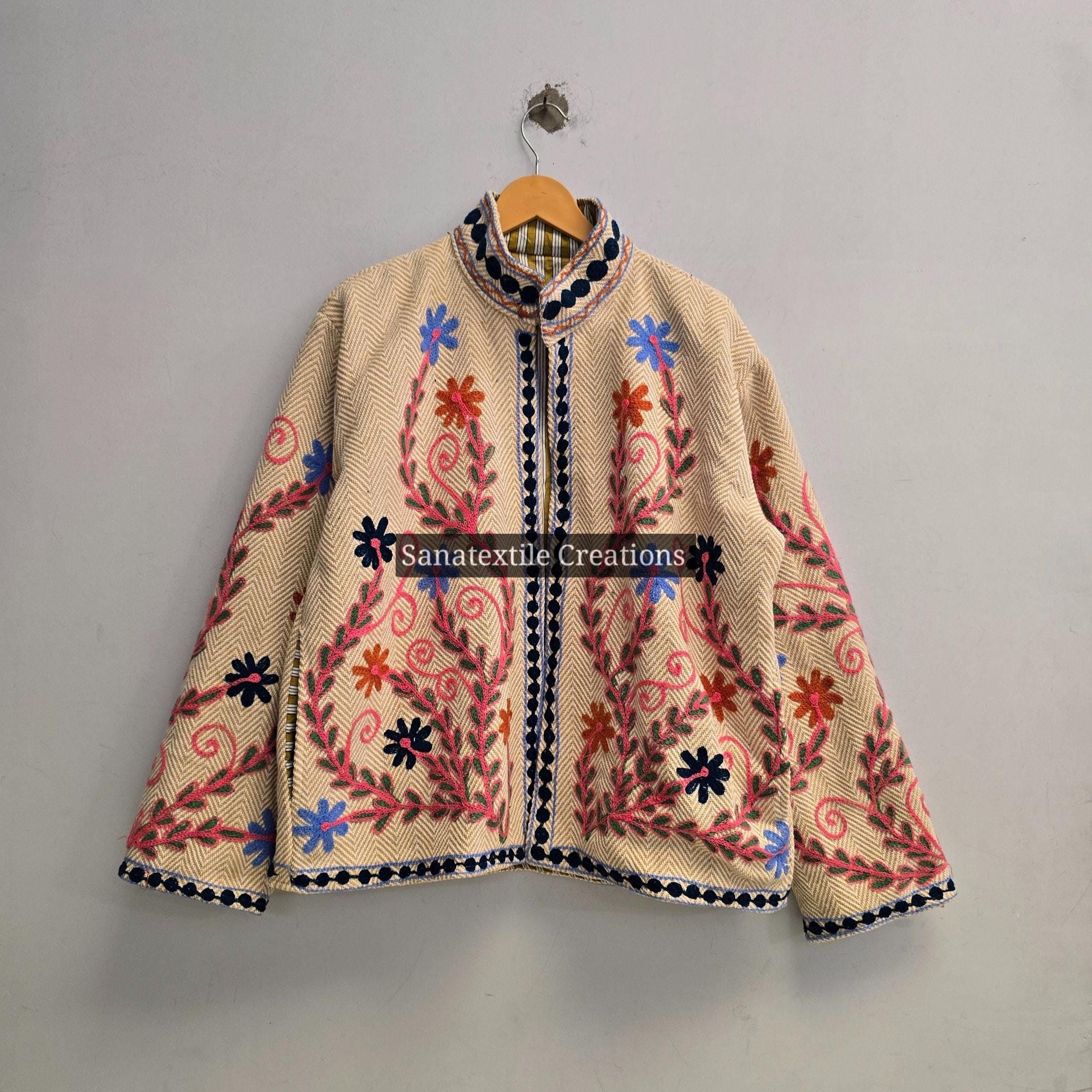 Boho bestickte Suzani Khadi Jacke | Boho Open Front Strickjacke, Festival Einzigartige Suzani Khadi ...