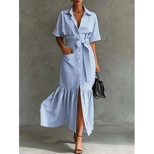 • Damen Midikleid Sommerkleid A Linie Kleid Figurbetontes Kleid Urlau...