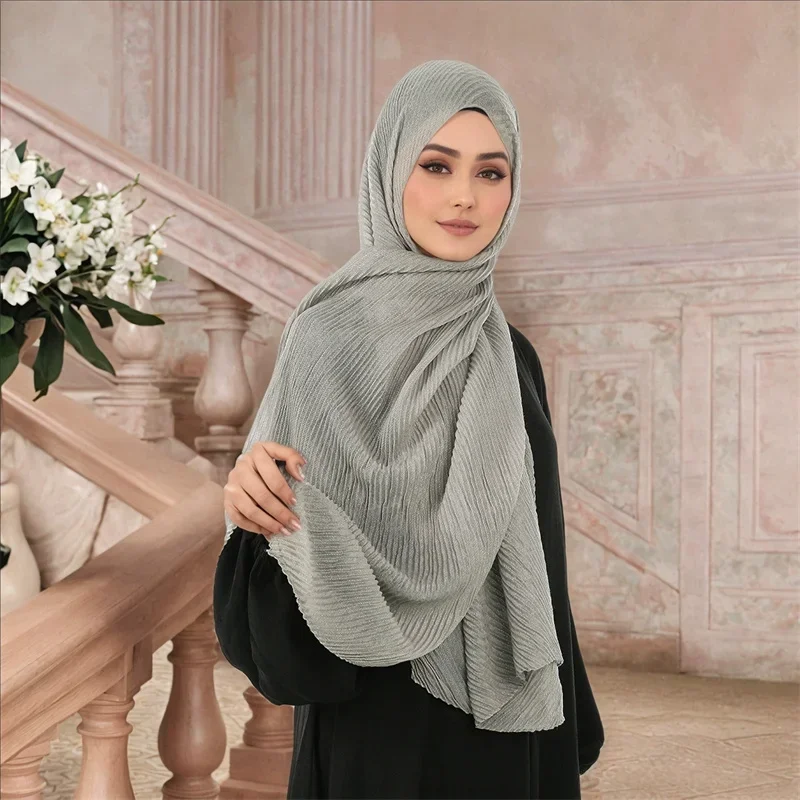 Plain Falten Lurex Glitter Schimmer Viskose Hijab Schals Schal Soli...