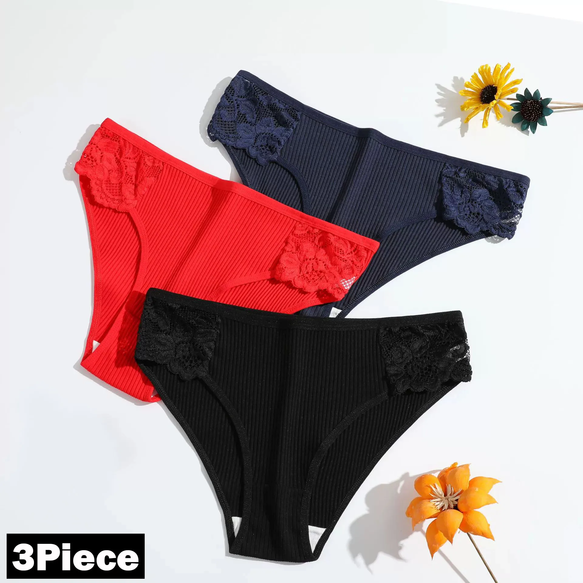 3 Teile/los Unterwäsche Frauen Baumwolle Höschen Low-Rise Patchwork Spitze Slip Weibliche ...