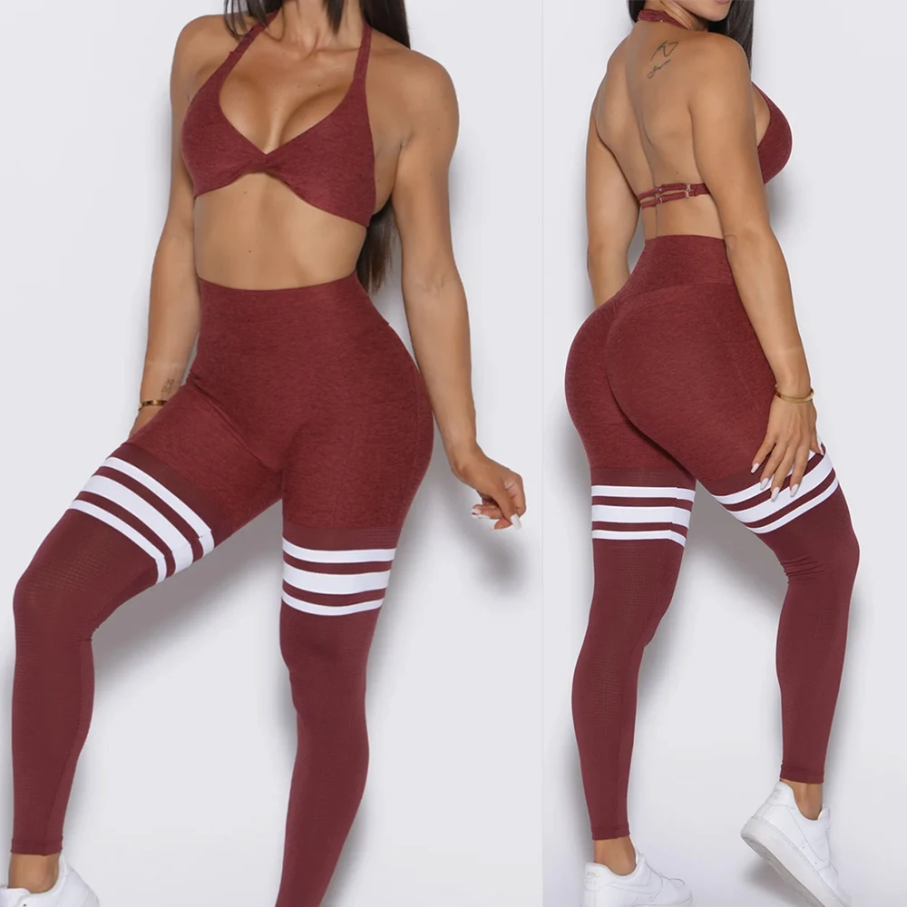 2-teiliges Set Sexy Neckholder rückenfrei Sportunterwäsche Fitness Yoga enge Patchwork lan...